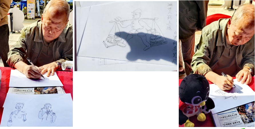 从长乐路搬至三林世博家园的读者韩德良,谈起与新民晚报的情缘,也有讲不完的话。他说,他住到哪里就把晚报订到了哪里。80岁老读者蒋永泉在现场为新民晚报画起了两幅漫画:《三毛》《湖州人到上海串街走巷,白果树蒸凳板》。