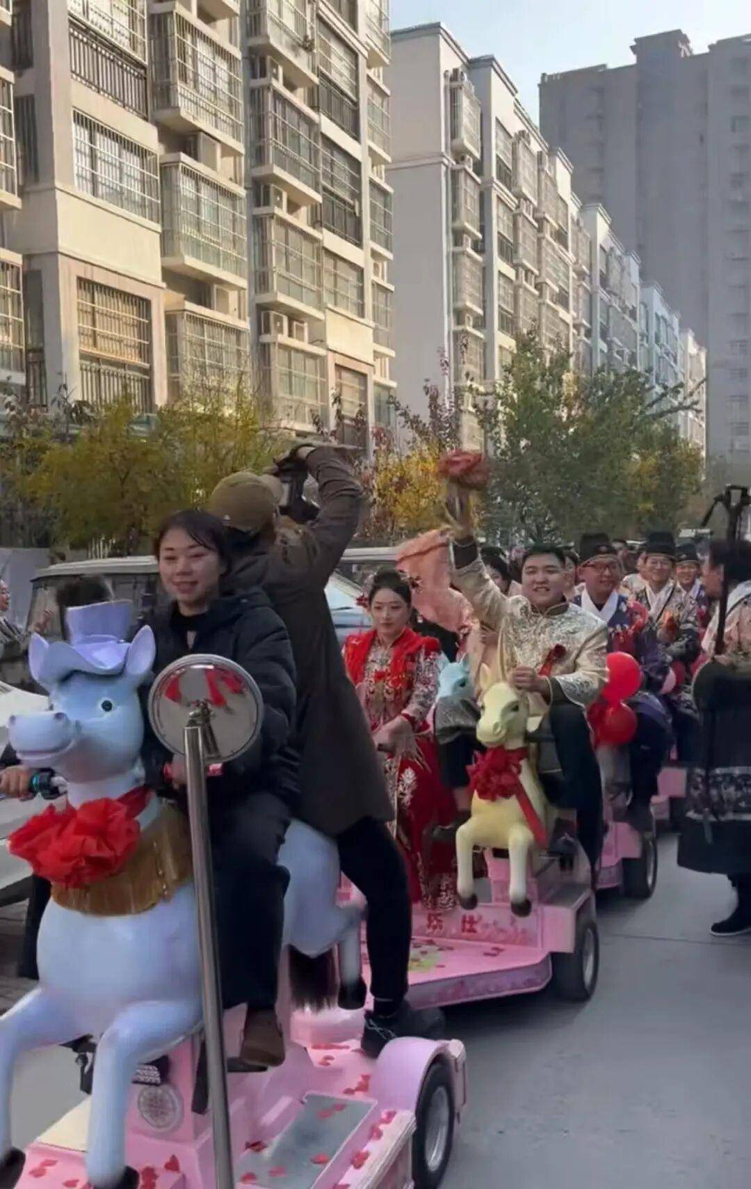 网络视频截图“他们就是搭载摇摇车接亲,后面就是正常的婚礼流程。”卫先生说,当天小区里来了很多人,不少居民与他们相识,双方家人都是很好的人。来源:极目新闻举报/反馈