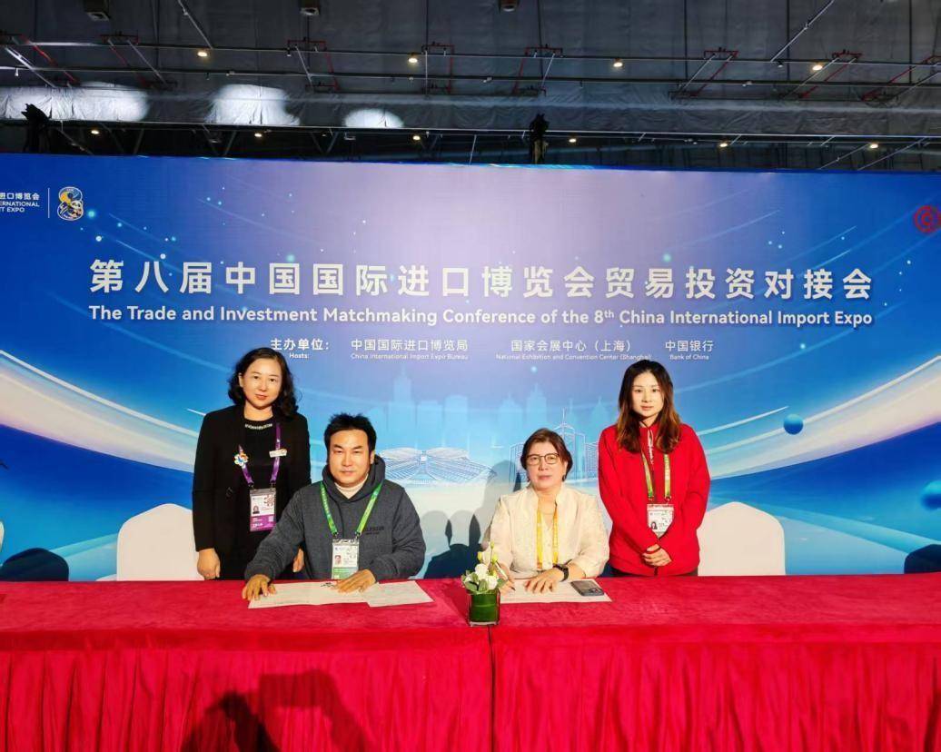 蔡晓喆(左一)促成意向签约。受访者供图