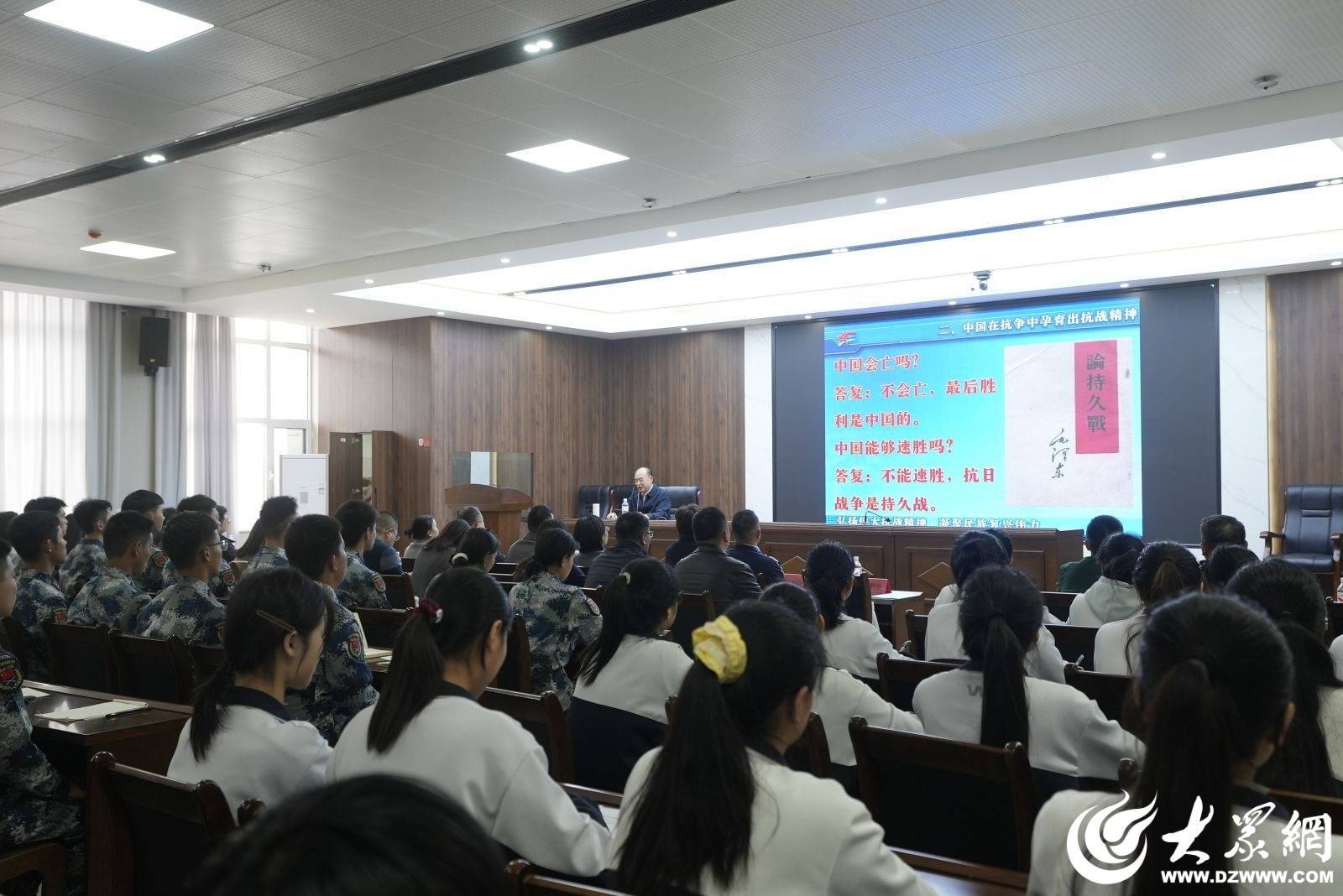 活动以“弘扬抗战精神共筑国防长城”为主题,邀请原济南陆军学院教授刘鹏为市直机关干部和学校师生作专题报告。作为国家级国防教育学首批入库专家,刘鹏在国防教育领域有深厚的专业权威性与广泛的行业认可度,此次他围绕阅兵是对抗战精神的时代传承、中国在抗战中孕育出抗战精神、民族复兴需要伟大抗战精神等方面,通过生动的案例和深入的分析,构建起清晰的国防认知框架,为市直机关干部和学校师生带来一场精彩的国防知识盛宴。